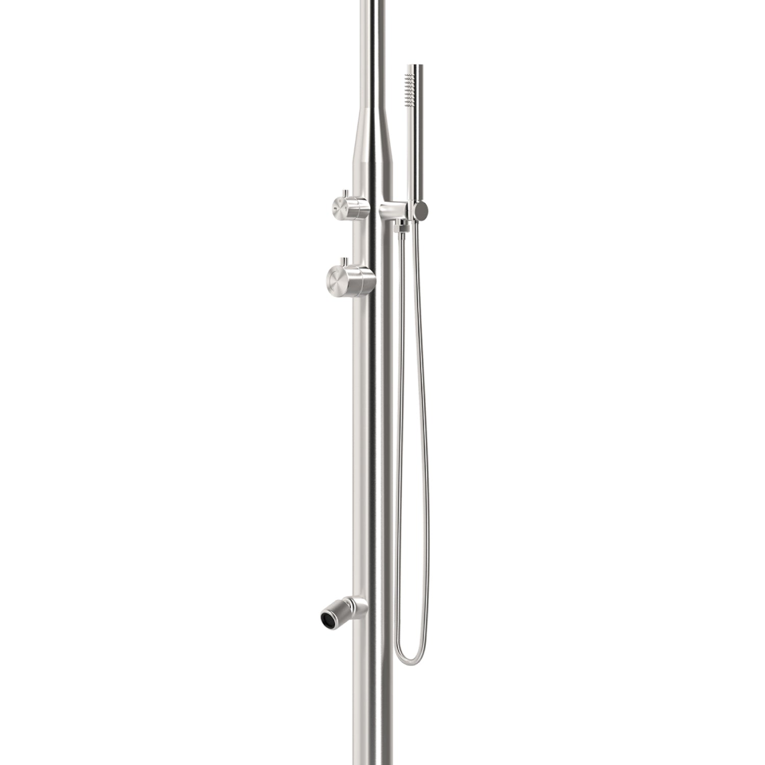 Ducha clásica de acero inoxidable para exteriores Sined de alta calidad, la ducha de acero inoxidable está diseñada y fabricada para cualquier instalación exterior. La ducha con teleducha modelo STINTINO INOX es una ducha de acero inoxidable satinado Aisi Inox 316L con entrada de agua caliente y fría. La ducha de exterior es excelente para uso comercial, privado, piscina exterior-interior, jardín, baño de casa, SPA o TERME. 2280 mm de altura. 60 mm de diámetro.