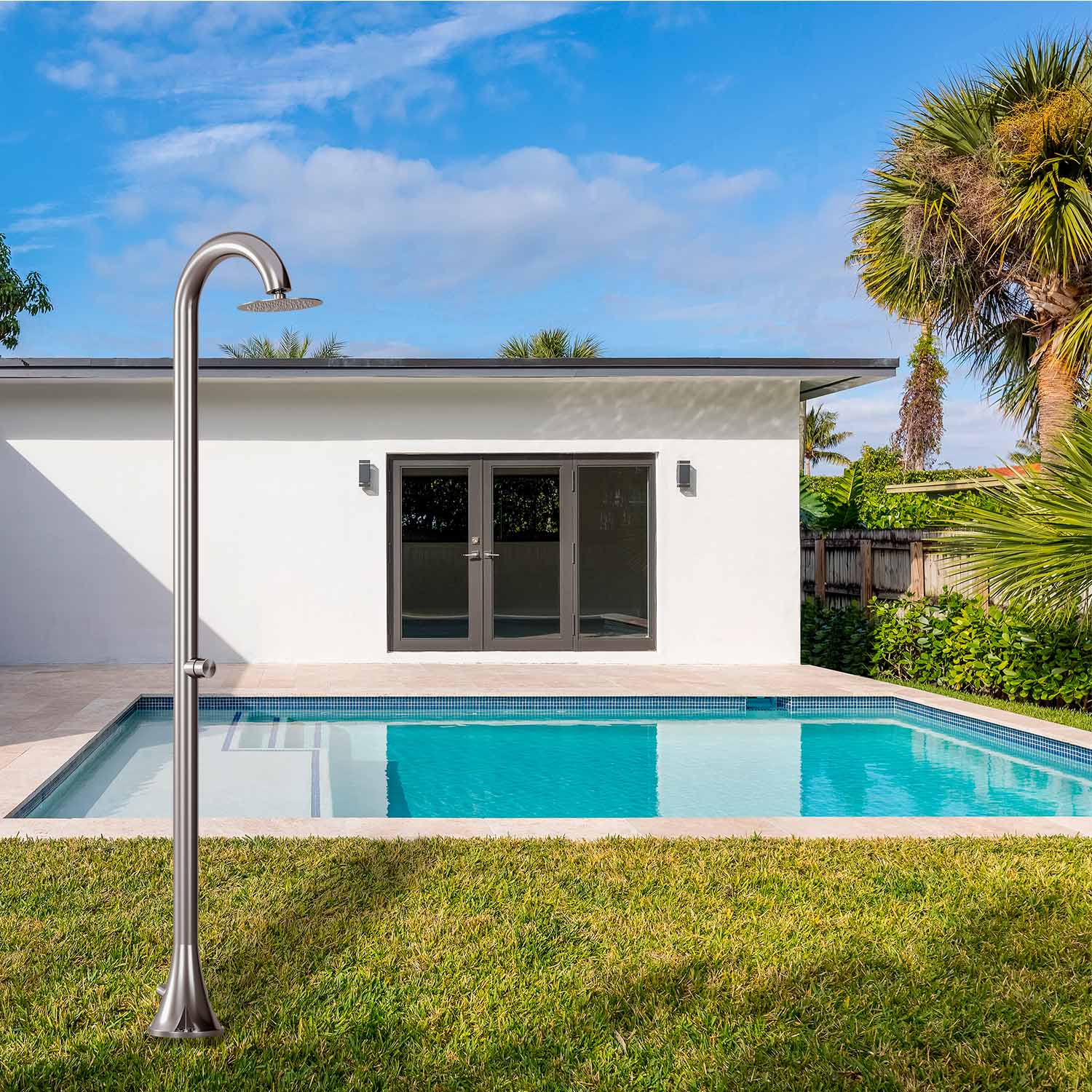 La douche extérieure temporisée en acier inoxydable est parfaite pour une large gamme d'applications. Elle peut être installée dans des zones de piscines, plages, jardins, mais aussi dans des espaces publics tels que les parcs et les zones de camping. Grâce à sa résistance aux intempéries et à la minuterie automatique de la douche, c'est le choix idéal pour des environnements nécessitant un haut degré de fonctionnalité et un engagement envers l'efficacité hydrique en extérieur.