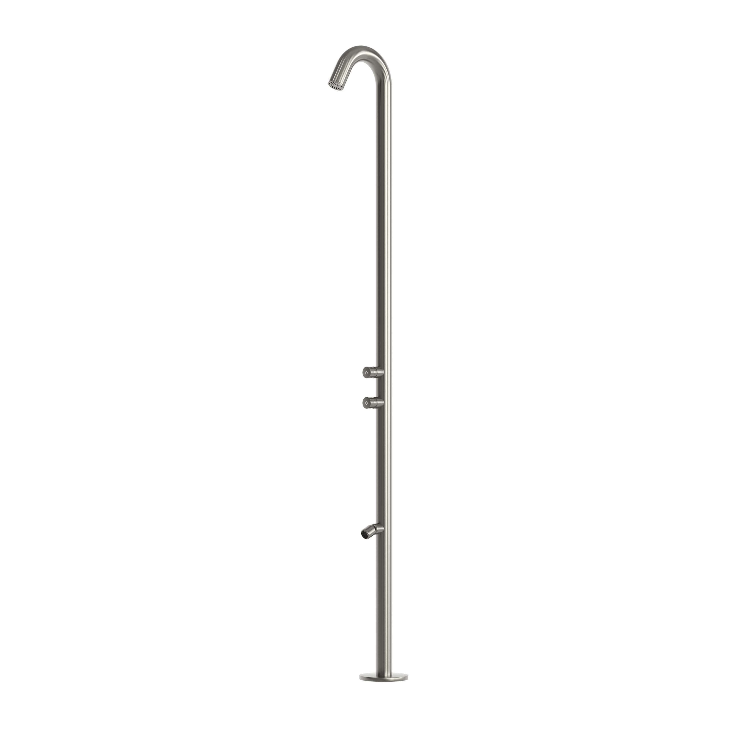 Elegante ducha de jardín de alta calidad en color bronce de cañón, la ducha de acero inoxidable está diseñada y fabricada para cualquier instalación exterior. La ducha modelo QUARTU con lavapiés es una ducha de acero inoxidable 316L con entrada de agua caliente y fría. La ducha de exterior es excelente para el uso comercial, privado, en la piscina exterior, en el jardín o en el baño de casa. Altura 2289 mm. diámetro 60 mm.
