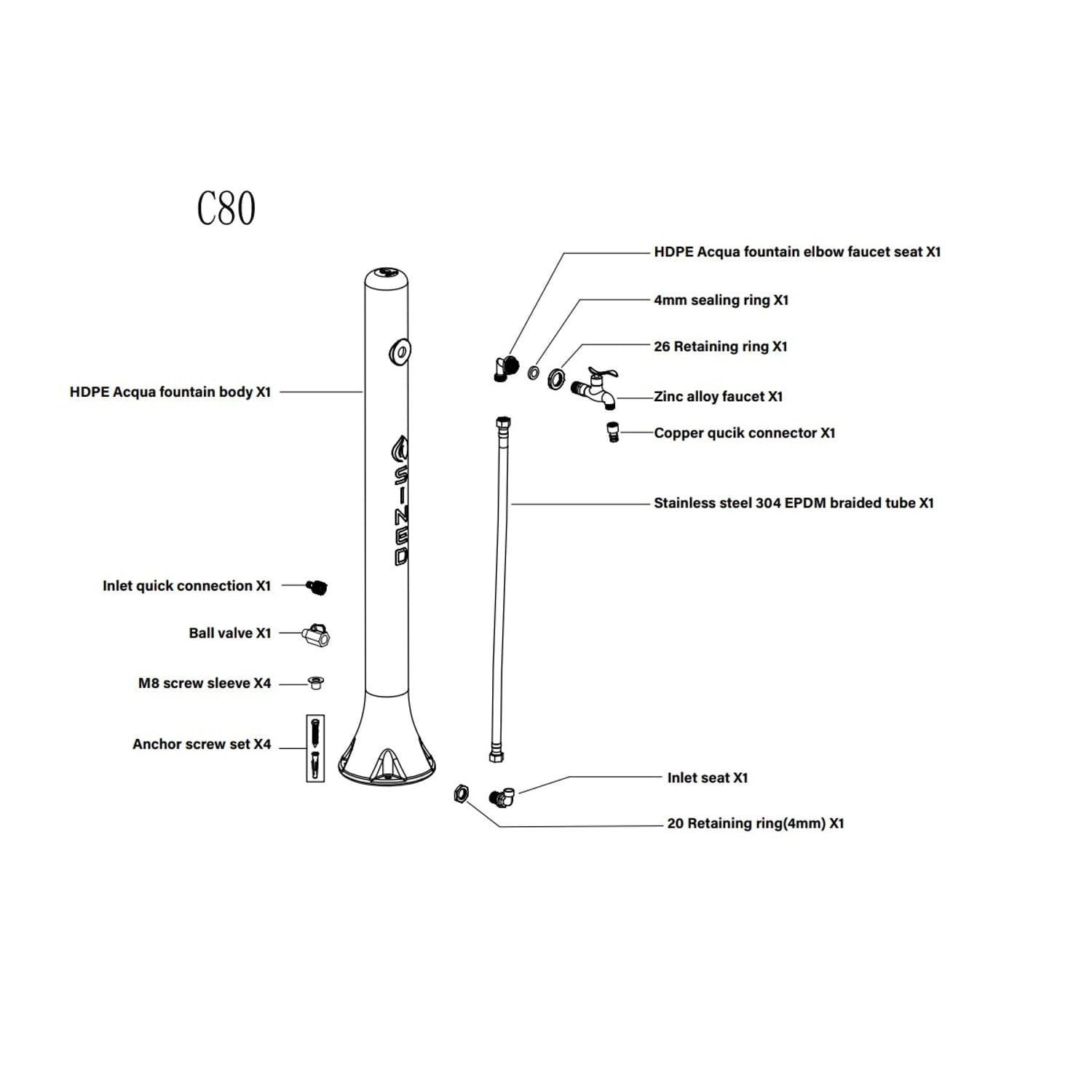 - Fontaine en HDPE (polyéthylène haute résistance) résistant aux rayons UV, au calcaire et à la salinité.