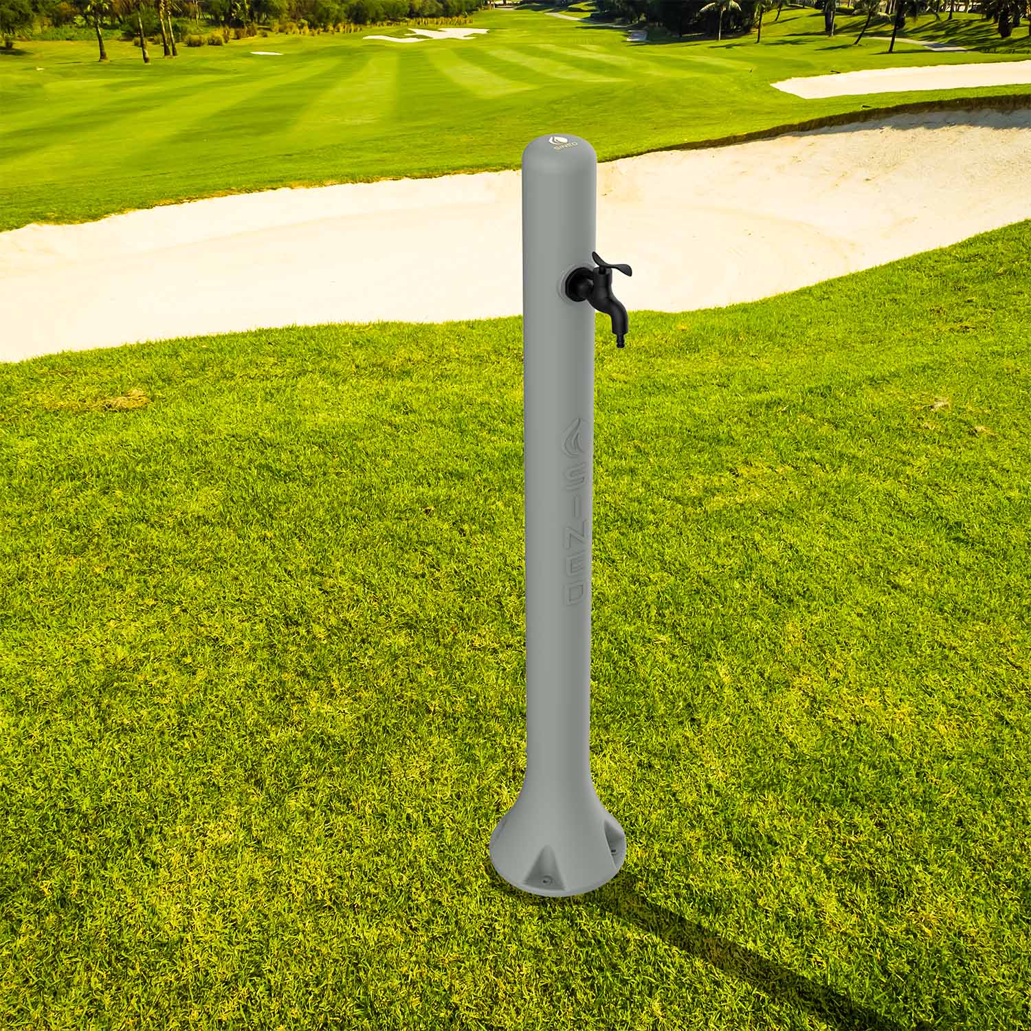 Moderne, nouvelle, dernière génération toujours utile pour divers usages tels que jardins, piscines, copropriétés, plages, espaces pour chiens pour cette fontaine d'eau froide gris tourterelle pour usage extérieur. Robinet en alliage métallique noir et prédisposition pour raccords rapides de tuyaux d'arrosage.