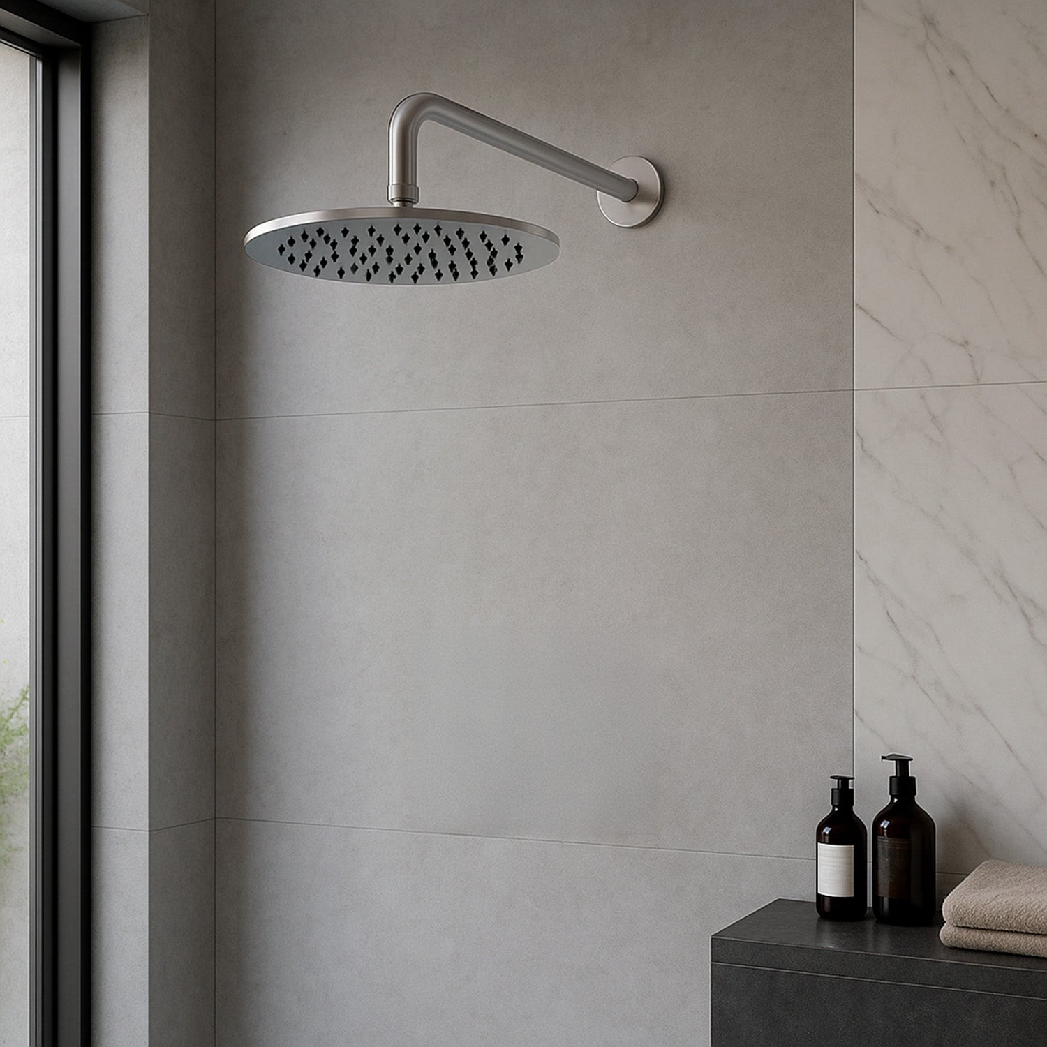 SINED Kit de brazo de ducha de acero inoxidable satinado de 25 cm para instalación en pared acero inoxidable 316L - Modelo LEVANTE