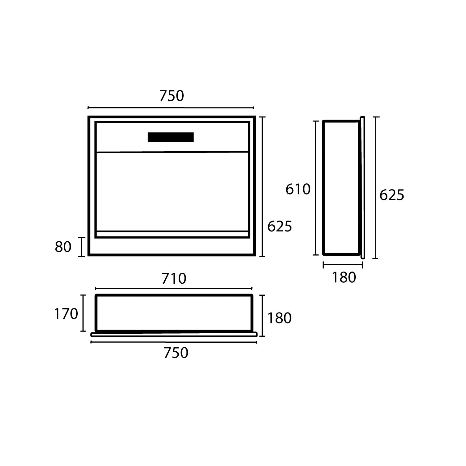 Insteekopening: 715 x 615 mm (met een aanbevolen tolerantie van 3 mm in breedte en hoogte)