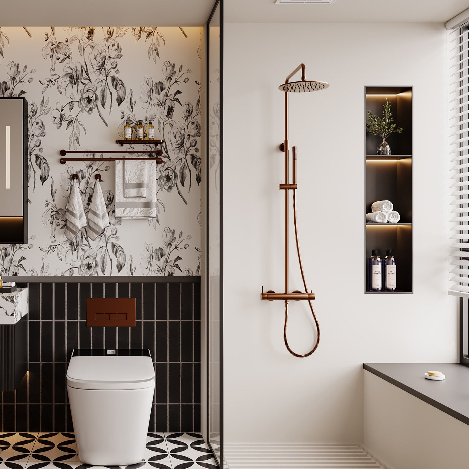 Kies voor de Levante wanddouche in roségoud en verander je ruimte in een toevluchtsoord van comfort en stijl. Je kiest niet alleen voor een douche, maar voor kwaliteit, verfijning en veiligheid voor jou en je gezin. Ben je klaar om te genieten van een ongeëvenaarde douche-ervaring?