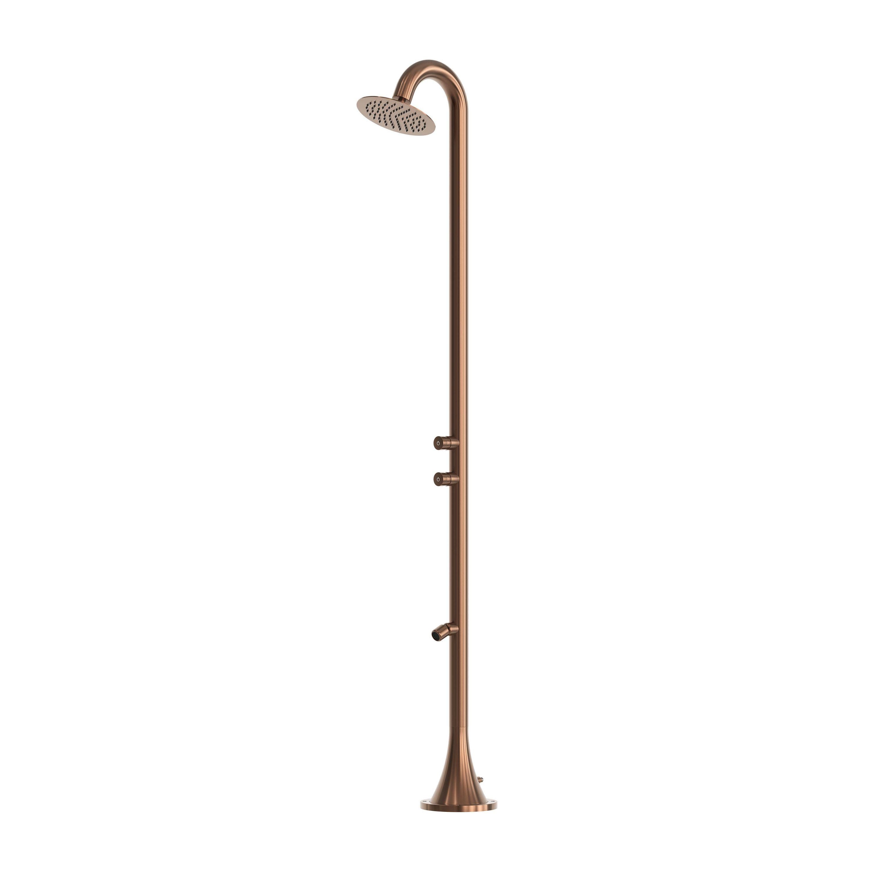 Fácil instalación: La columna de ducha exterior de acero inoxidable, con una base redonda de 20 cm de diámetro y 229,5 cm de altura, ofrece una instalación versátil y sencilla, adecuada para diversas configuraciones espaciales.